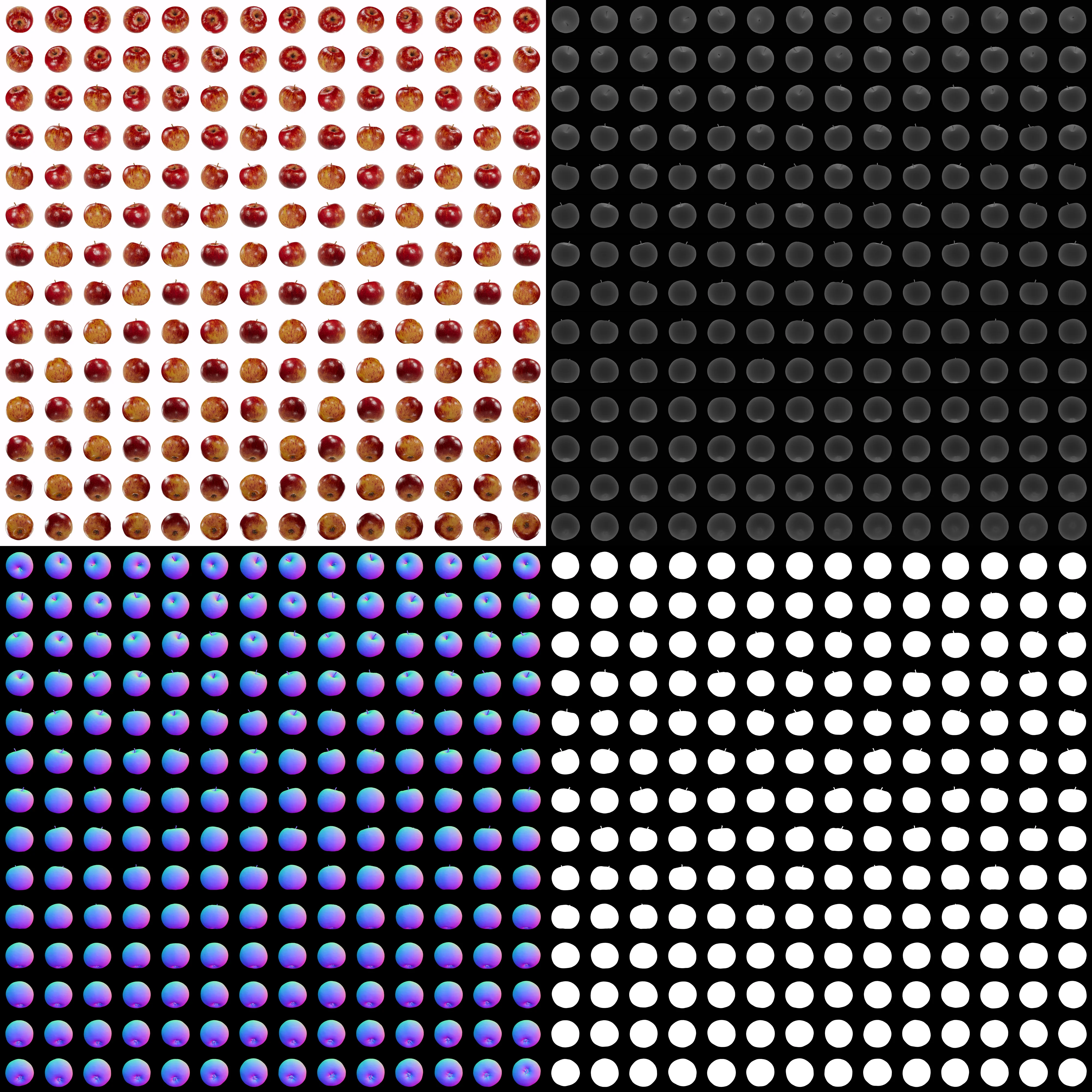| Modalities | RGB Depth 8-bit Depth 16-bit Normals Masks |
